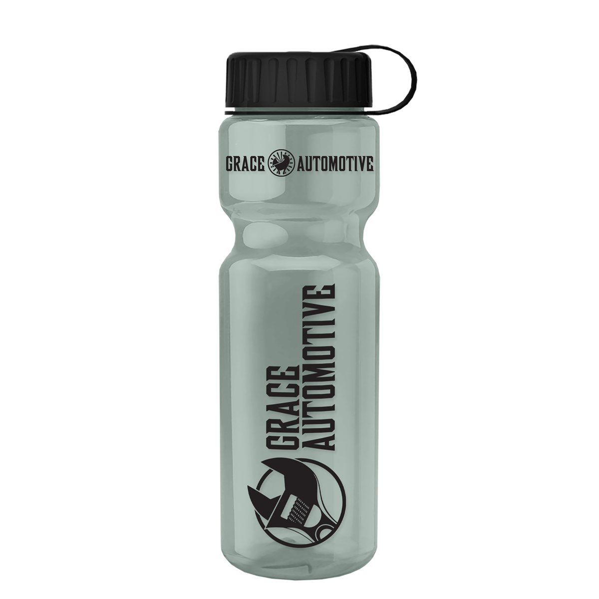 This classic 28 oz. sport bottle features a tethered, screw-on lid and a contoured design for a secure grip. It fits standard bike cages and most cup holders, making it the perfect companion for workouts, commutes, or weekend adventures. With mix-and-match bottle and lid color options, it?s easy to create a standout piece for any promotion. 98% of total product made from post-consumer recycled PET. 2.875" W x 9.75" H x 2.875" D