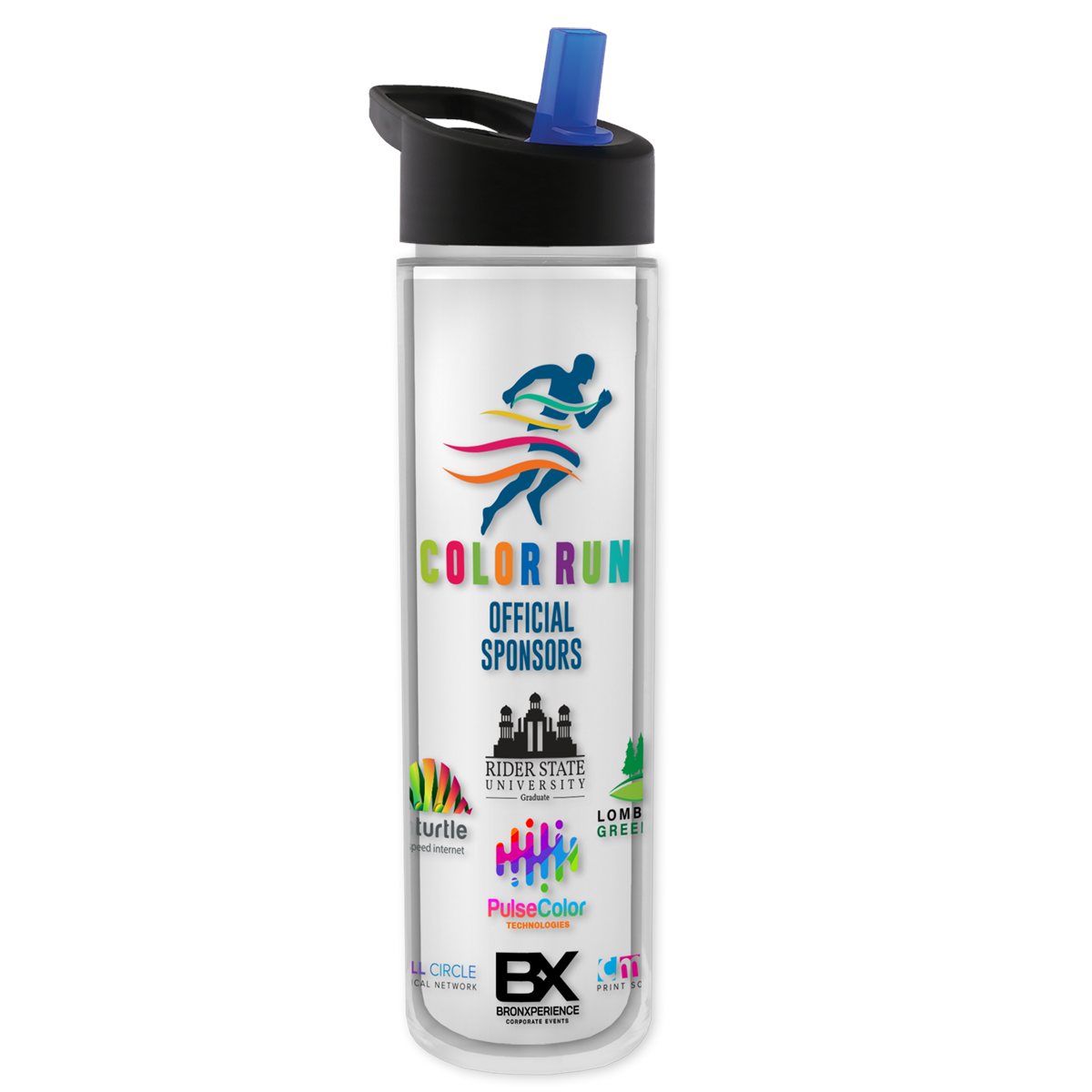 Keep every sip chilled with this 16 oz. double-wall insulated bottle, designed to keep beverages at the perfect temperature longer. Its flip-straw lid with molded carry loop makes it easy to take anywhere, while rigid-wall construction delivers long-lasting performance. Add your brand in full color with a vibrant wraparound insert for a standout promo built for effortless everyday use. 2.75" W x 10.125" H x 2.75" D