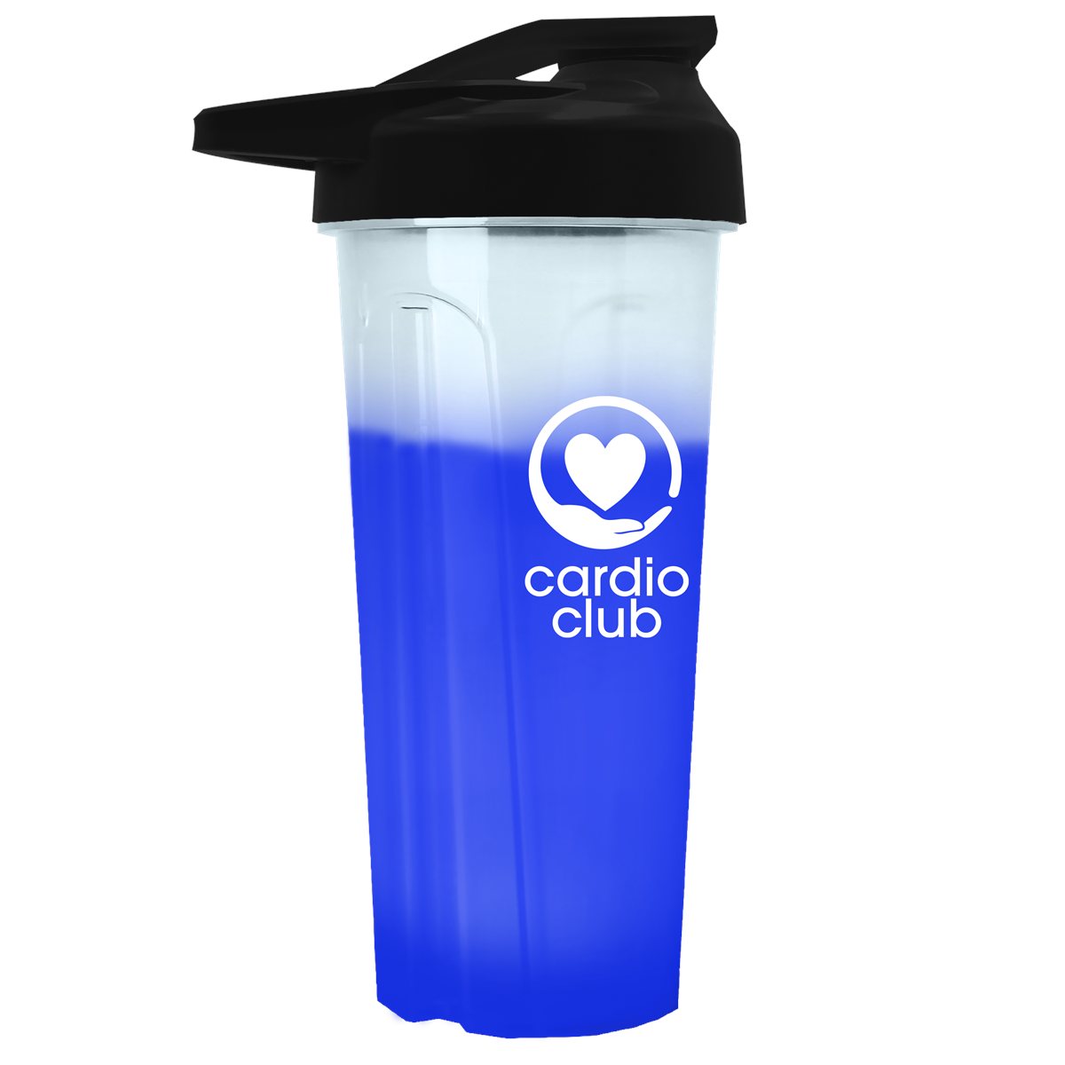 Power up your workout style with this 24 oz. color-changing shaker tumbler! Just add a cold drink and watch the cup transform, adding a fun twist to your fitness routine. The drink-thru lid, wide opening, and built-in measurement scales make mixing shakes and supplements quick and precise. With customizable color combinations for the lid and cup, it?s the perfect choice for gyms, fitness centers, or anyone with an active lifestyle. Complies with ANSI, CPSIA, FDA, Prop 65. 3.875" W x 9.25" H x 3.875" D