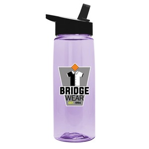 This durable 26 oz. Tritan® bottle is a crowd-pleasing option, designed with an extra-large opening for easy filling and cleaning. It features a flip-straw lid with molded carry loop for effortless transport, making it ideal for life on the go. With mix-and-match lid and bottle color options, it?s a perfect fit for events, gyms, schools, and everyday use. Add an optional Motivational Measurement imprint on the second side to easily track your daily water intake, available at no extra charge when using the same screen print ink color as your side-one imprint. 3.125" Diameter x 9.25" H