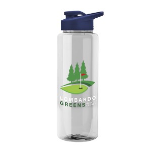 Fuel your day with this 32 oz. transparent straight-wall bottle, designed for outdoor adventures and daily use. The flip-top, drink-through lid with molded carry loop offers quick and easy sipping, while the large capacity ensures you stay hydrated wherever you go. Mix and match bottle and lid colors to make it your own, and upgrade with an optional Motivational Measurement imprint on the second side, available at no extra charge when using the same screen print ink color as your side-one imprint. Complies with ANSI, CPSIA, FDA, Prop 65. 3.25" W x 9.75" H x 3.25" D