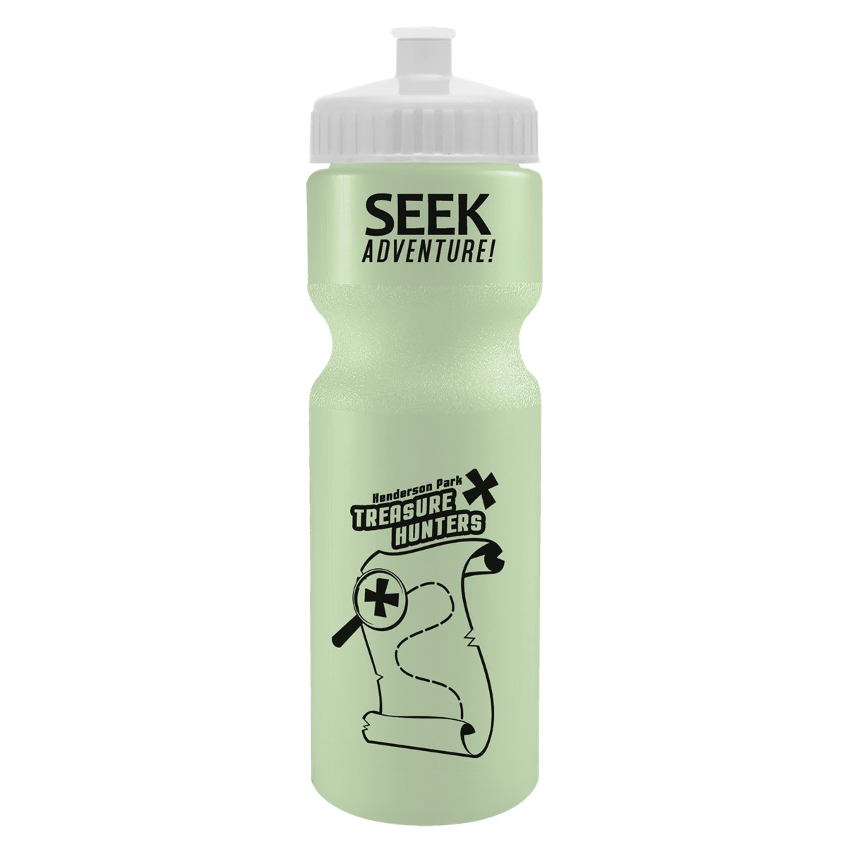 This classic 28 oz. sport bottle has a glow-in-the-dark design that keeps it visible even in low-light settings, making it perfect for evening workouts, camping, or late-night adventures. The push-pull lid provides easy sipping, and the contoured, textured design allows for a secure grip. It fits standard bike cages and offers mix-and-match bottle and lid colors for a personalized look. Up to 40% of the bottle is made from post-industrial recycled HDPE. Complies with ANSI, CPSIA, FDA, Prop 65. 2.875" W x 9.75" H x 2.875" D