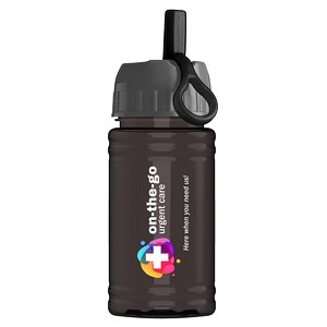 This handy-sized 16 oz. bottle makes on-the-go hydration a breeze. Its straight-wall, translucent design makes it easy to monitor intake, while the flip-straw lid, with a built-in carry ring, adds convenience for on-the-go sipping. 98% of total product made from post-consumer recycled PET. Complies with ANSI, CPSIA, FDA, Prop 65. 2.875" W x 8.25" H x 2.875" D