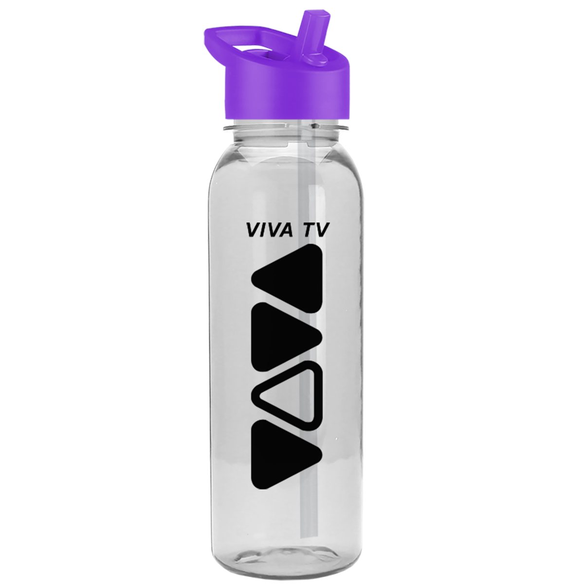 This 24 oz. transparent Tritan® bottle stands out with its classic design and durable rigid-wall construction that holds up to repeated use. The convenient flip-straw lid with molded carry loop makes it easy to sip wherever the day takes you. With so many mix-and-match color combinations for the bottle and lid, it?s a fun and versatile way to showcase any brand?s personality. Complies with ANSI, CPSIA, FDA, Prop 65. 2.875" W x 10" H x 2.875" D