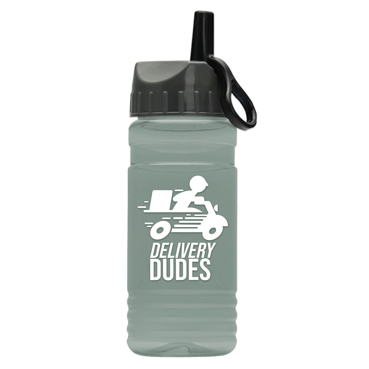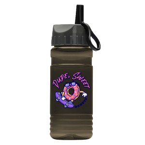 Stand out with this 20 oz. bottle featuring a unique straight-wall cylinder design and compact shape. Molded with 98% post-consumer recycled PET, it?s a reusable, sustainable option for everyday hydration needs. The convenient flip-straw lid with built-in carry ring makes it ideal for an on-the-go lifestyle. Complies with ANSI, CPSIA, FDA, Prop 65. 2.875" W x 9.25" H x 2.875" D