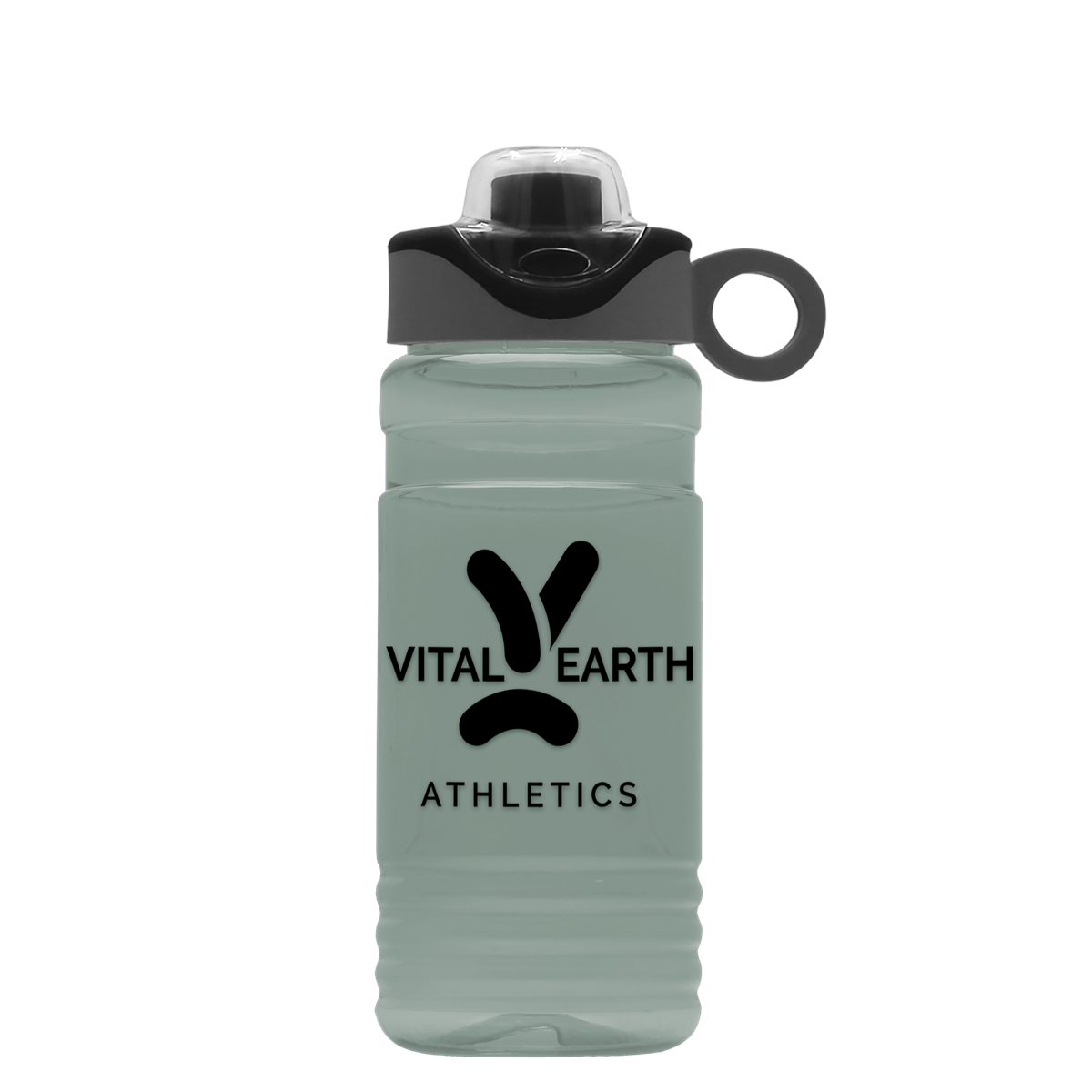 Stand out with this 20 oz. bottle featuring a unique straight-wall cylinder design and compact shape. Molded with 98% post-consumer recycled PET, it?s a reusable, sustainable option for everyday hydration needs. The two-tone lid with drink-through spout has an attached silicone loop, perfect for an on-the-go lifestyle, while mix-and-match lid and bottle color options let you create a unique look. 2.875" W x 8" H x 2.875" D