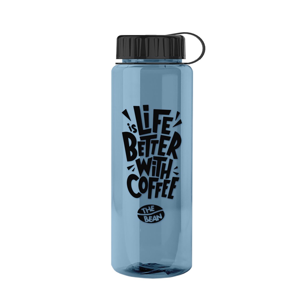 Power through your day with this 32 oz. RPET bottle that?s made to keep you hydrated longer. The tethered, screw-on lid makes it easy to grab and go, while mix-and-match bottle and lid colors let you create a look all your own. Add the optional Motivational Measurement imprint on the second side to track your water intake; it?s free when the screen print ink color matches your side-one imprint. Bottle molded with 98% post-consumer recycled PET. 3.25" W x 9.25" H x 3.25" D
