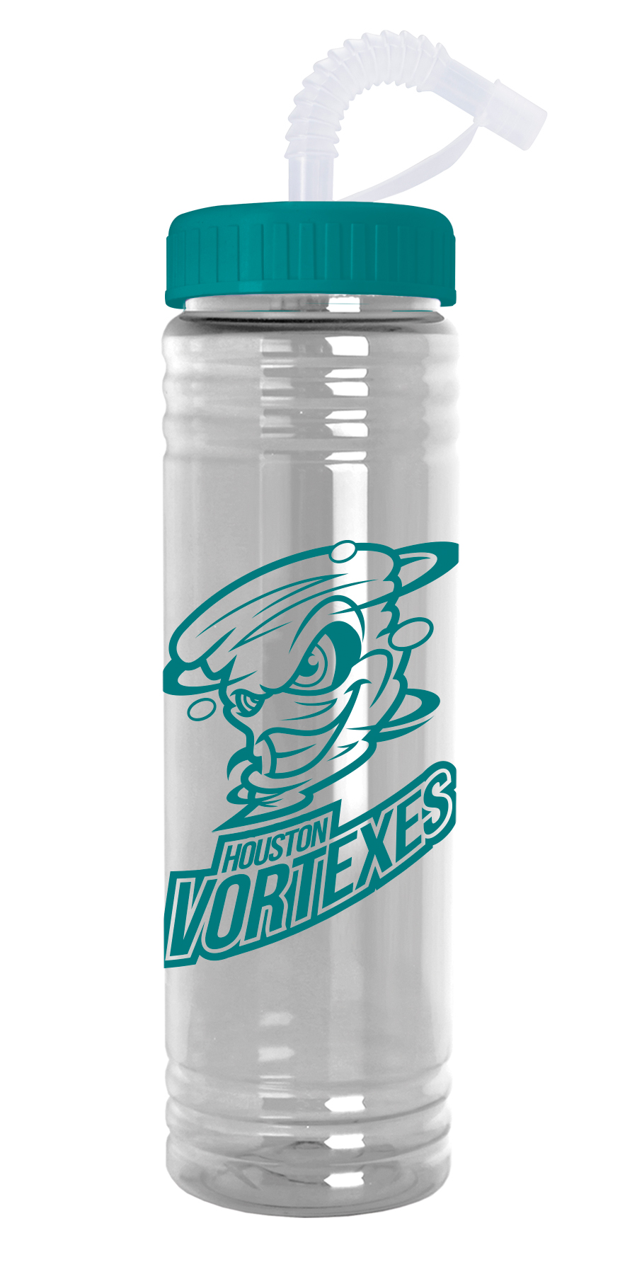 Stay refreshed with this 24 oz. bottle featuring raised ring accents. The lid has a flexible straw lid with a tethered cap that makes on-the-go hydration a breeze, and its slim design fits most cup holders. Mix and match bottle and lid colors to create a custom look, and upgrade with an optional Motivational Measurement imprint on the second side to easily track daily water intake. This feature is available at no extra charge when the screen print ink color is the same color as your side-one imprint. 2.75" Diameter x 9.75" H