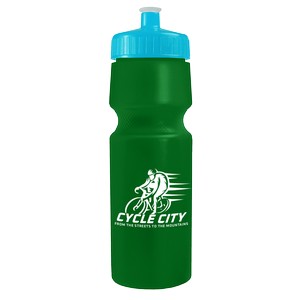 Stand out with this 20 oz. bottle featuring a unique straight-wall cylinder design and compact shape. Molded with 98% post-consumer recycled PET, it?s a reusable, sustainable option for everyday hydration needs. The sip-through spout with quick-snap cover keep spills at bay and an attached wrist strap is perfect for an on-the-go lifestyle. Mix-and-match lid and bottle color options let you create a unique look. Complies with ANSI, CPSIA, FDA, Prop 65. 2.875" W x 9.25" H x 2.875" D