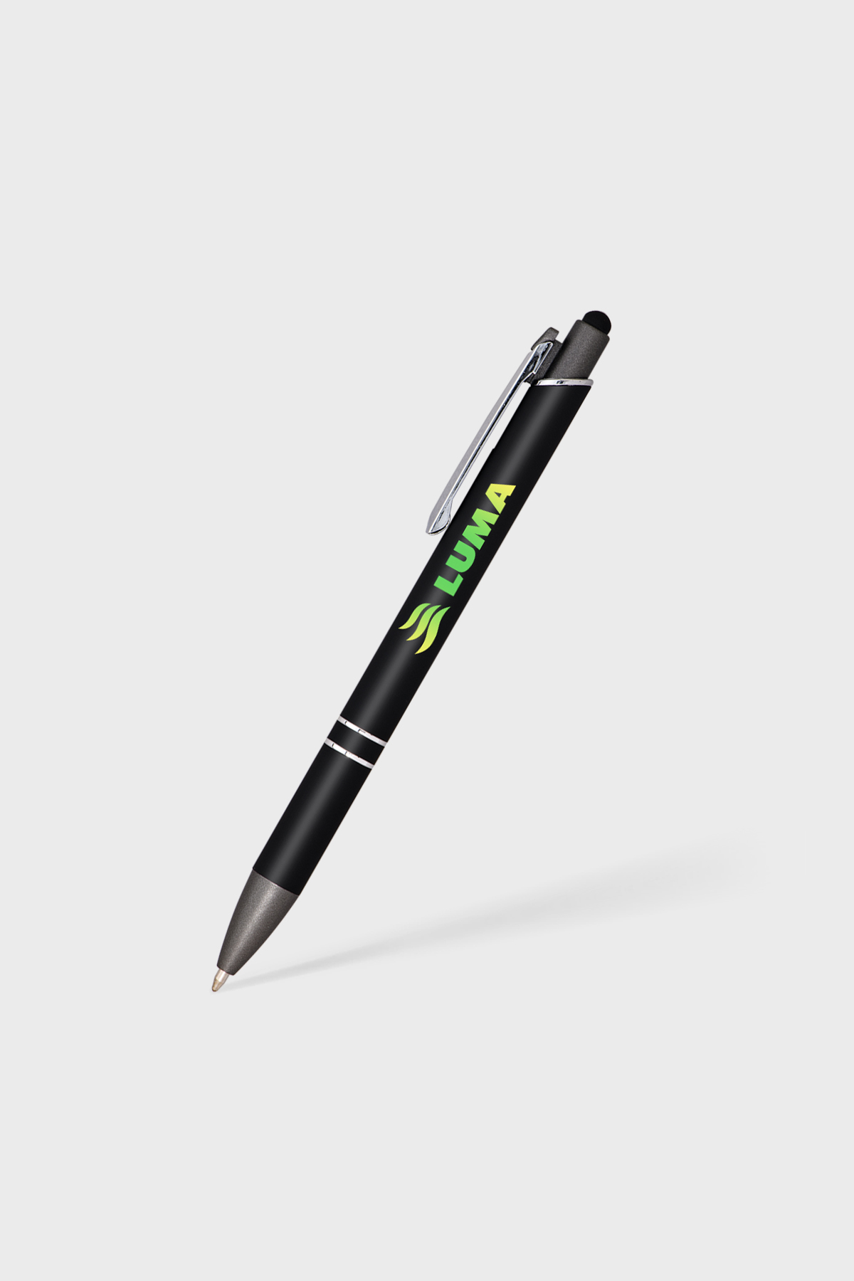 All signs point to the Gemini Pure. This executive metal stylus pen features a soft-touch finish with antimicrobial properties; to keep your hands and workspace clean. It offers classic contemporary details such as a sculpted clip and a silver and brushed gunmetal accent. Your engraved silver imprint is sure to nicely contrast with the matte finish barrel and generous imprint area. Material: Metal With Rubberized Finish With Antimicrobial Properties Standard Decoration Includes: Laser Engraved on Barrel (Unavailable on Red and White pens) All Available Decoration Options: Lasered: 2.25" W x 0.25" H Barrel Expanded Engraving: 2.25" W x 0.375" H Barrel Full Color: 2.25" W x 0.25" H Barrel Infinity Print: 2.75" W x 1.373" H Barrel (White pen only) Straight Line Copy: Yes Tip Type: Ball Point Mechanism: Push Retractable Standard Packaging: Bulk Tags: Popular, Metal, Gift, Desk, Office, Executive, Advertisement, College, Grade, Writing, Merchandise, Study, High School, University, Essay, List, Home, Pen, Classic, Trade Show