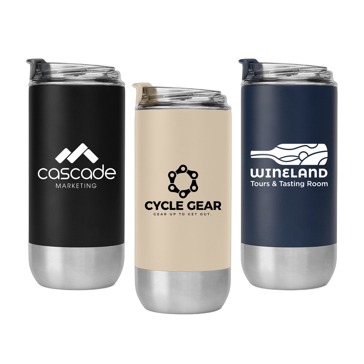 Introducing our Glacier - 16 oz. Double-Wall Recycled Stainless Steel Tumbler - Crafted from 304 recycled stainless steel for both the outer and inner body. The leak-proof flip lid is made of a combination of recycled AS (Acrylonitrile Styrene) and recycled PP. With a double walled vacuum insulation it keeps drinks hot for 6 hours and cold for 24 hours, boasting a 16oz. capacity. The tumbler features a drinking hole suitable for a straw, a matte finish powder coating. Measuring 7.09" h x 3" diameter, it fits most car cup holders. Your logo will be imprinted in Silk Screen. Complies with Prop 65. 7.09" H x 2.99" W
