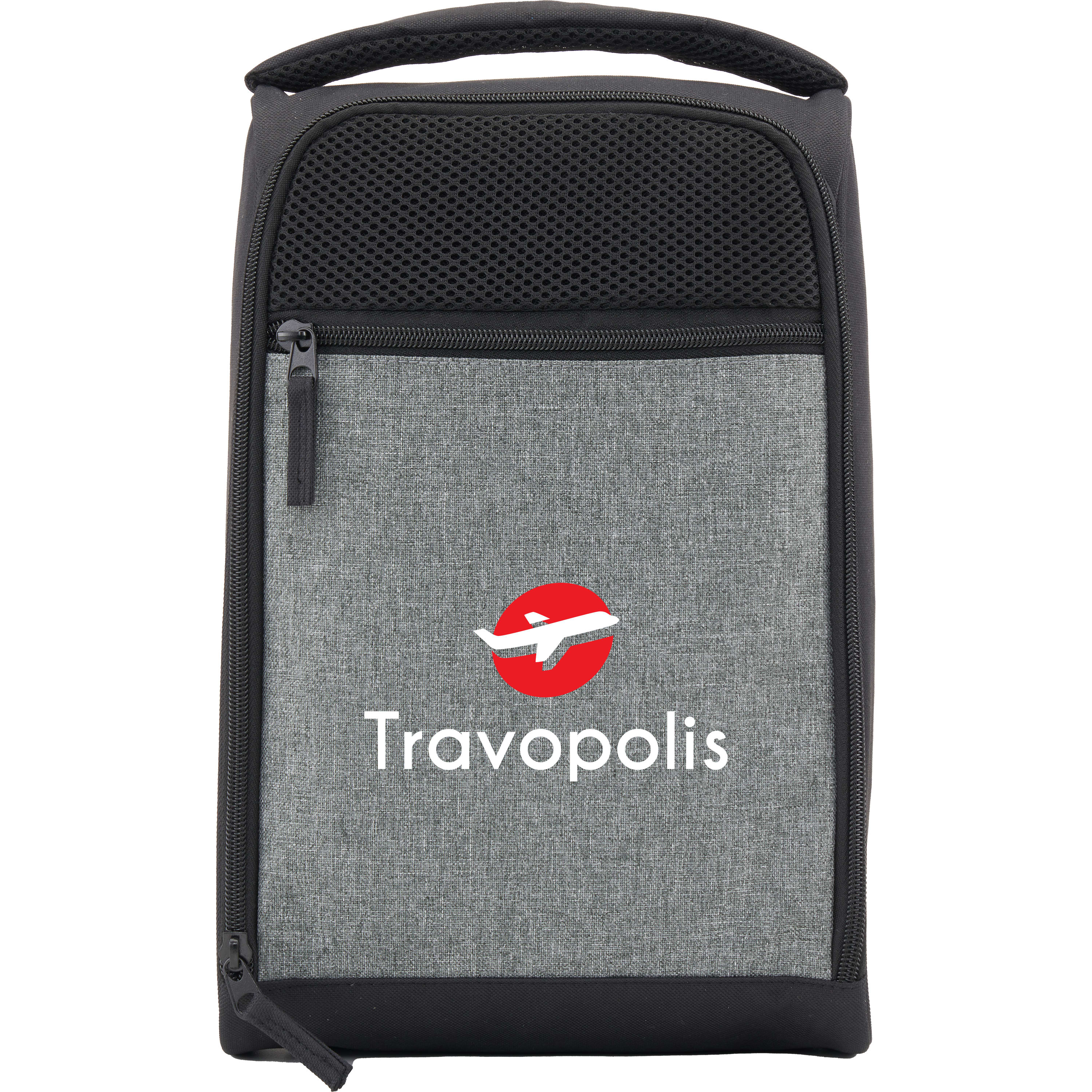 The Golf & Travel Shoe Bag is the perfect travel companion. Designed to easily fit in your travel-bags, this shoe bag will keep your shoes separated from your other clothing and valuables—no more shoe prints on your dress shirts! Simply slip your shoes into the bag, zip it shut, and toss it into your suitcase. Can fit up to a size 16 men's shoe. Made using durable 600D recycled PET. 13.50" D x 9.50" W x 13.50" H