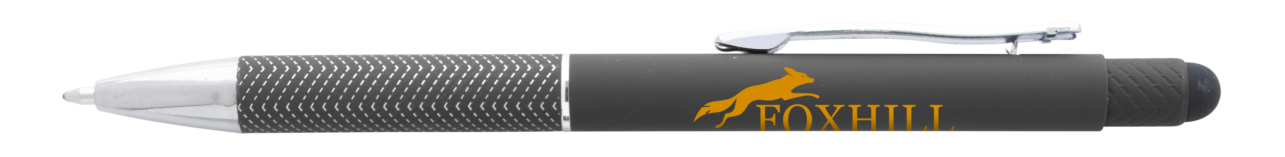 Everyday essentials like pens don?t have to be bland. Enter the Bella Stylus Pen. This soft-touch writing instrument struts its style with chrome accents and a laser-etched design in the grip that is echoed on the plunger. Flip effortlessly between paper and device as you tackle your busy day. 0.375" W x 5.6875" H