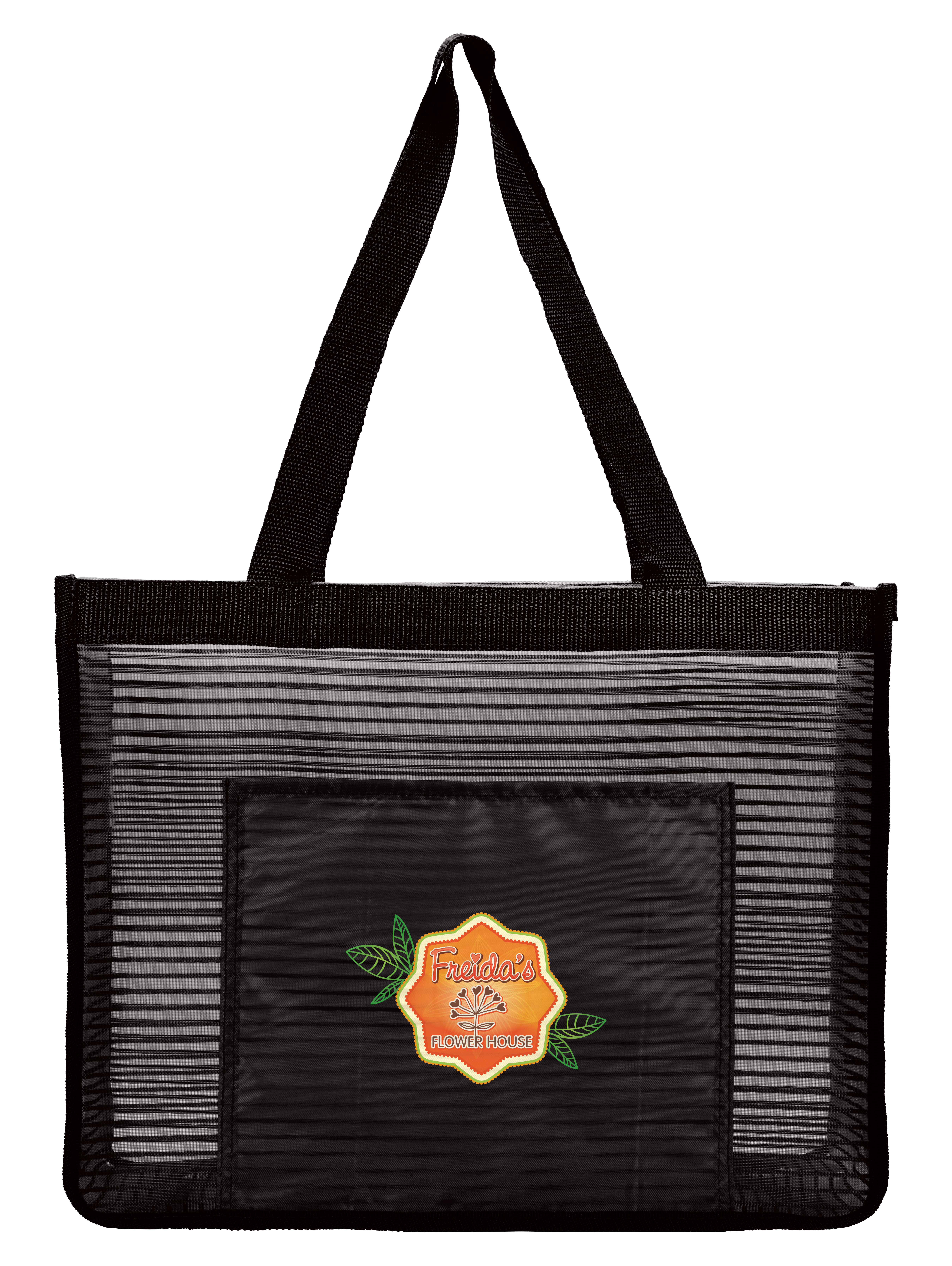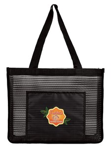 Pack your towel and flip-flops in this mesh tote and head off to a fun day at the pool or beach. Its front slip pocket provides the perfect spot to tuck your car keys while you're enjoying the sun. Complies with Prop 65. 16.125" W x 12.5" H x 6.375" D