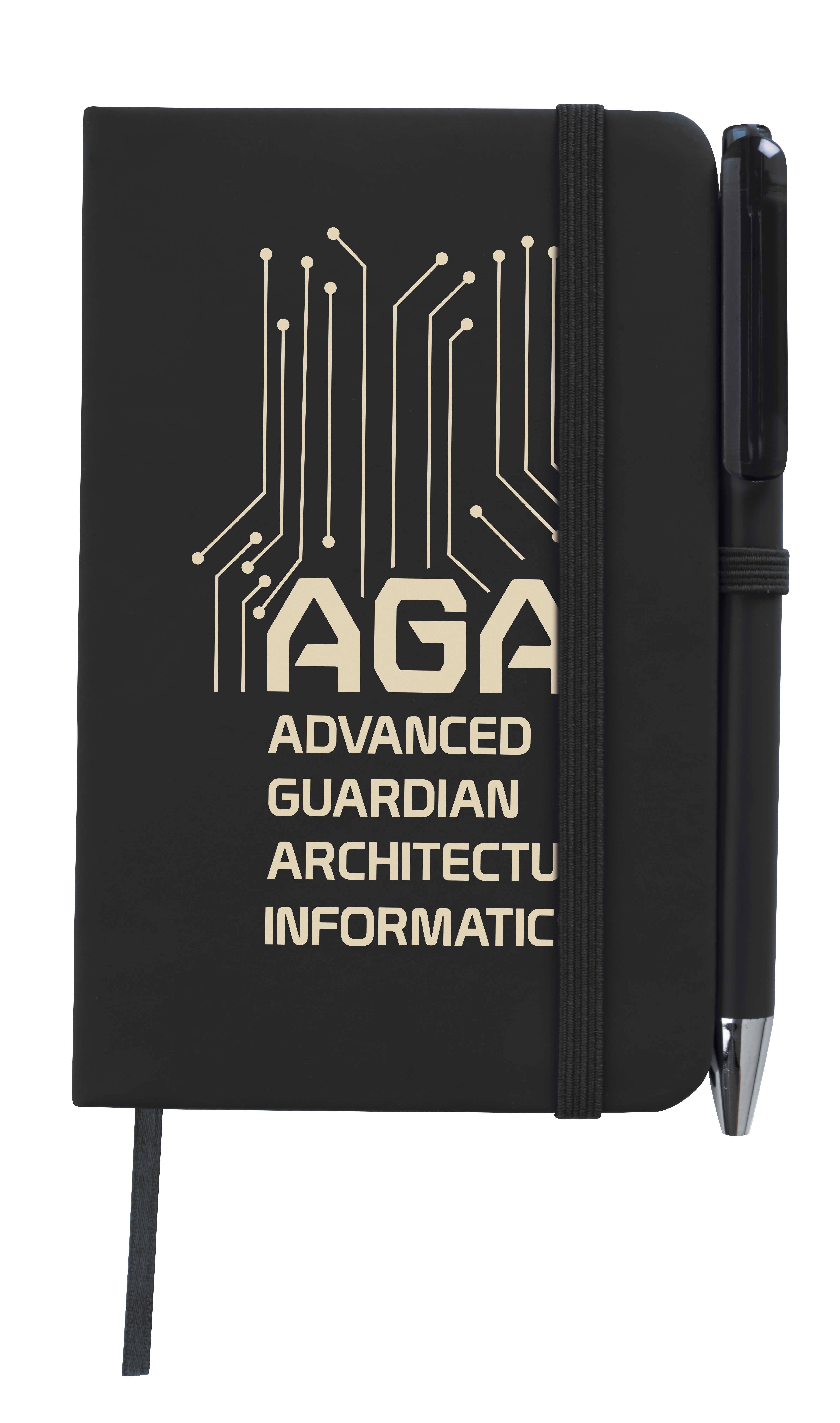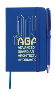 Take this mini notebook/pen combo with you when space is limited. Its bookmark, elastic band closure, and 50 sheets FSC®-certified white lined paper will keep you organized throughout the day. The FSC® label means that the materials used for this product come from well-managed FSC®-certified forests and other controlled sources. 3.5" W x 5.5" H x .375" D
