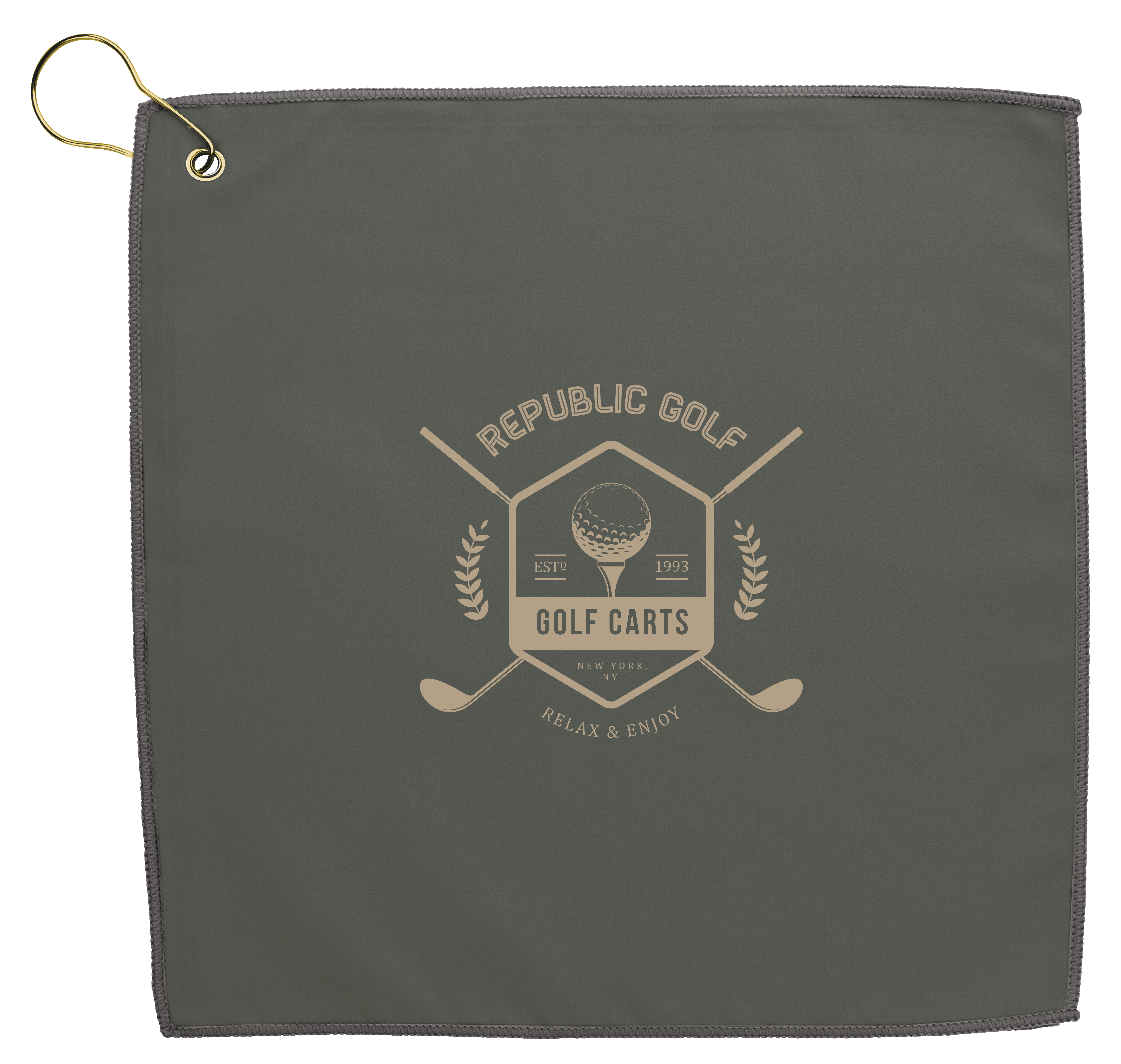 The design of this RPET golf towel keeps the outside clean. Use the inner layer to clean your clubs; then dry them on the outside. Comes with a hook so you can easily hang it on your cart bag. 11.875" W x 11.875" H