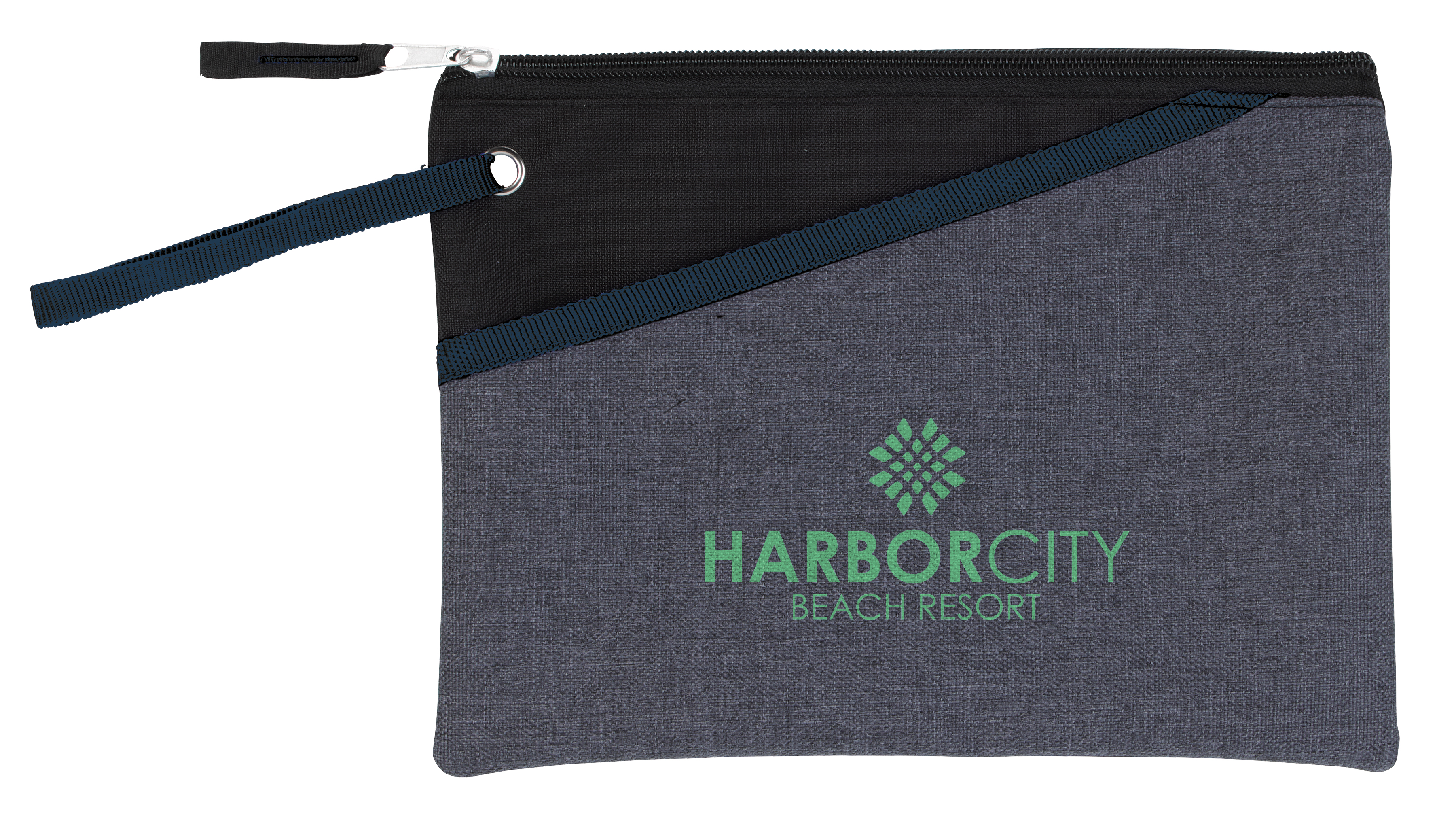 Do your part to make the world a little greener! This eco-conscious pouch is made of recycled PET fabrics with color accents. Reusing available materials saves resources and is one action you can take to make a positive impact. 10.0625" W x 7.3125" H