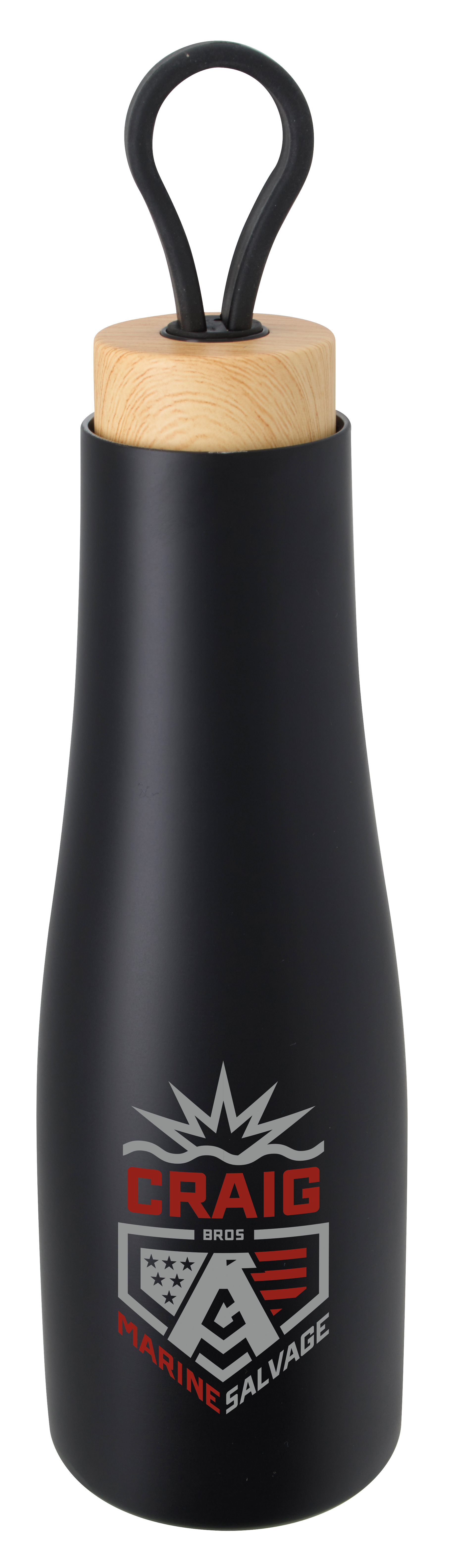 This eco-friendly bottle stands out from the crowd with its faux woodgrain lid and sleek shape. The easy-carry silicone handle makes it easy to tote around with you all day, and double-wall vacuum insulation keeps your drink cool for up to 10 hours. 3.125" Diameter x 11.5" H