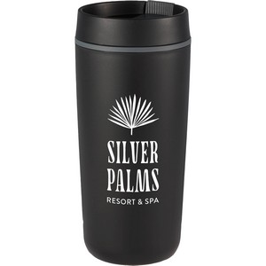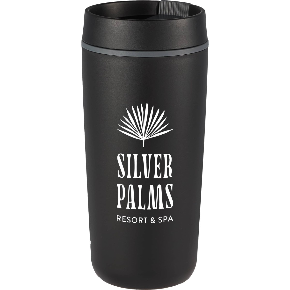 The Grande Tumbler is a 16oz, recycled travel companion crafted entirely from 100% recycled plastic. Its air-insulated, double-wall construction helps maintain the temperature of your favorite hot or cold beverages in any environment. The screw-on lid features a slide-lock opening, allowing for easy sipping on the go. Designed for durability and everyday use, this tumbler is the perfect blend of style and function. Hand wash only. 3.36" D x 3.36" W x 8.39" H