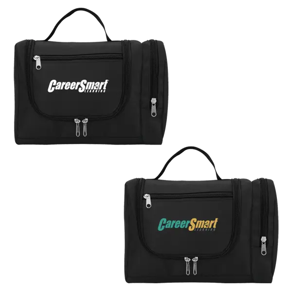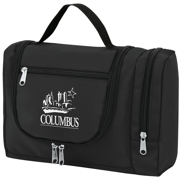 Keep all your toiletries together in this extra roomy travel bag! Multiple zippered compartments inside and out, Includes hanging hook inside to conveniently hang from anywhere - a traveler's must have!
