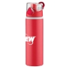 27 oz. Aluminum water bottle, Bold color matte finish, Light gray plastic lip accent, Matching color plastic press-n-flip cap with acrylic clear lid, Attached loop, BPA free, Not microwave or dishwasher safe. Item size: 10"h x 2 7/8" dia.