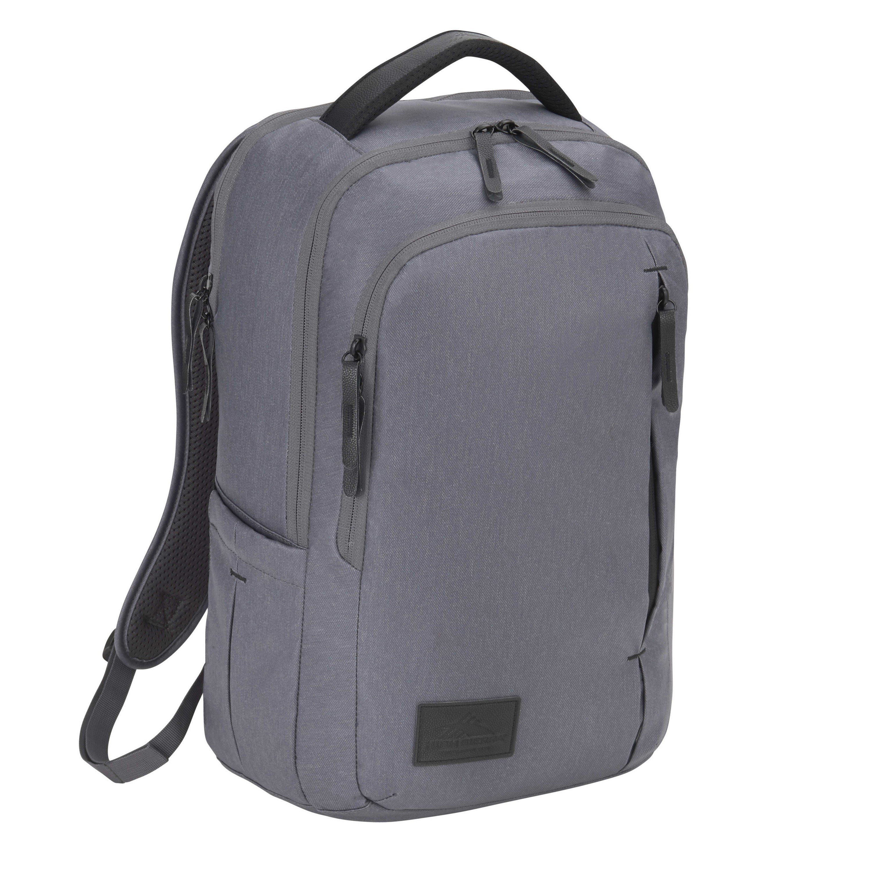 The High Sierra Slim 15" Computer backpack is made from durable and easy-to-clean water-resistant material. It features a padded 15" laptop compartment, a roomy main compartment with a padded tablet sleeve, a front vertical zippered pocket, and an extra compartment with a built-in organization panel. With its mesh padded back panel, trolley pass-through detail, and padded adjustable shoulder and chest straps, this slim PolyCanvas backpack is easy to carry anywhere. 6.00" D x 12.00" W x 18.00" H