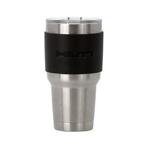Huntsman debossed leather sleeve for 30 Oz. stainless steel tumbler (stainless steel tumbler not included). Choose from a variety of domestic, USA Made, leather colors and customize to match your company logo to create something truly unique. Colors and distress marks will vary - Variations found in natural leather. Complies with Prop 65. 2.75" H x 4" Diameter