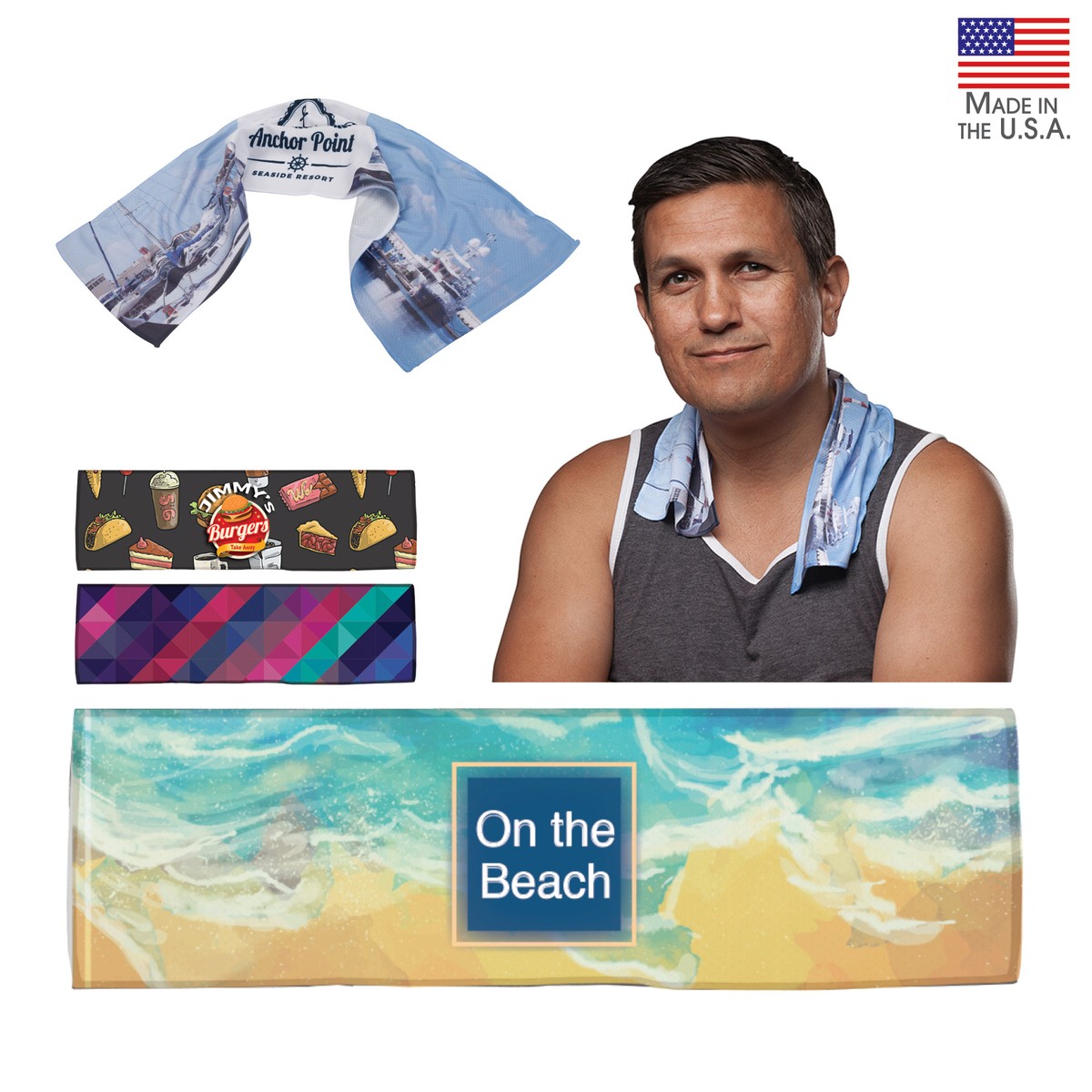 Stay cool on the warmest of days with the U.S.A.-Made ICE 6" x 21" lightweight RPET cooling wrap. It is made from RapidCool polymer and is ultra-soft, super absorbent and easy to use. Just soak, wring and snap to activate. Perfect for hot and humid conditions and high performance activities. Complies with Prop 65. 5 1/2" W x 6 1/2" H x 1/4" D