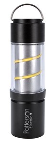 Illuminate your adventures with this innovative flashlight that effortlessly transforms into a lantern. Its adjustable focus provides both spotlight precision and wide floodlight coverage, while the unique swirl design of the lantern, available in different color options, offers a fun twist. The rechargeable 300 mAh battery provides up to an hour of lighting, and you can use the metal ring on top to hang it from a backpack or at your camping site. 1.125" Diameter x 3.6875" L