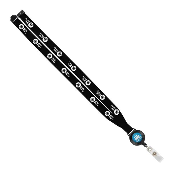 Raise your hand if you love a lanyard. Nerds, you're not alone. This classic promo item is functional, fashionable, and super effective. Especially our imported polyester lanyard with a metal crimp and retractable badge reel with a 30" pull cord, so it's perfect for IDs, name tags, and more. It also comes with lots of customization. Select lanyard, reel colors, and full color dome design. Of course, add your custom screen printed logo or brand name to the lanyard too. Complies with Prop 65. 0.75" W x 16" L