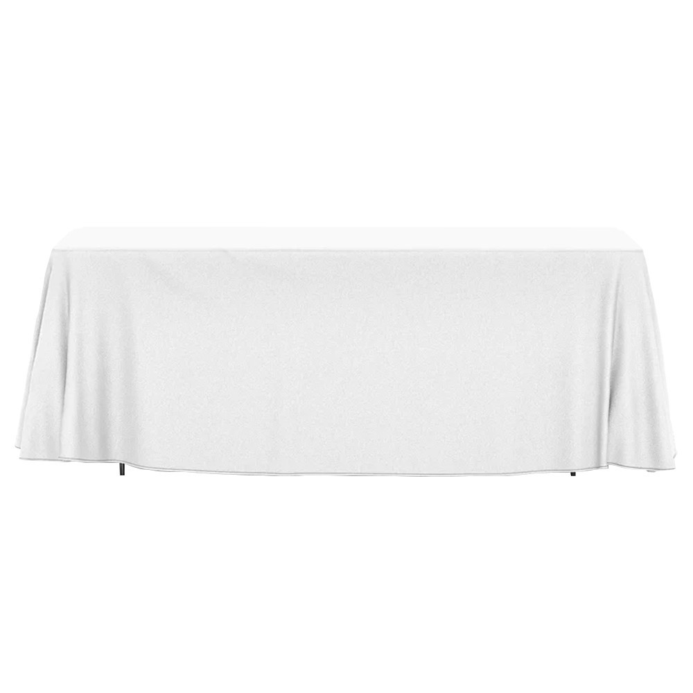 "Wow – we need to check out that one"! This Drape style Full Color Dye-Sublimation Imprint table throw will grab your audience's attention and won't let go. Just throw it on top of your table – no assembly required! Front, back, and top dimensions are 60"w x 24"l, and the sides are 24"w x 24"l x 28 ½"h. Display Hardware and stands have a 1 yr warranty against defects in materials and workmanship when properly assembled and used under normal conditions. 28.5" W x 30" L