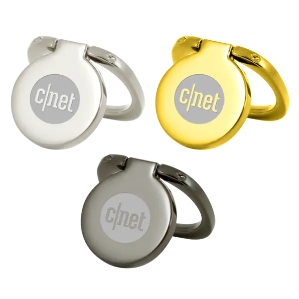 Adhesive zinc alloy phone ring doubles as a stand and convenient way to safely hold your phone or tablet. 1.1875" H x 0.125" W