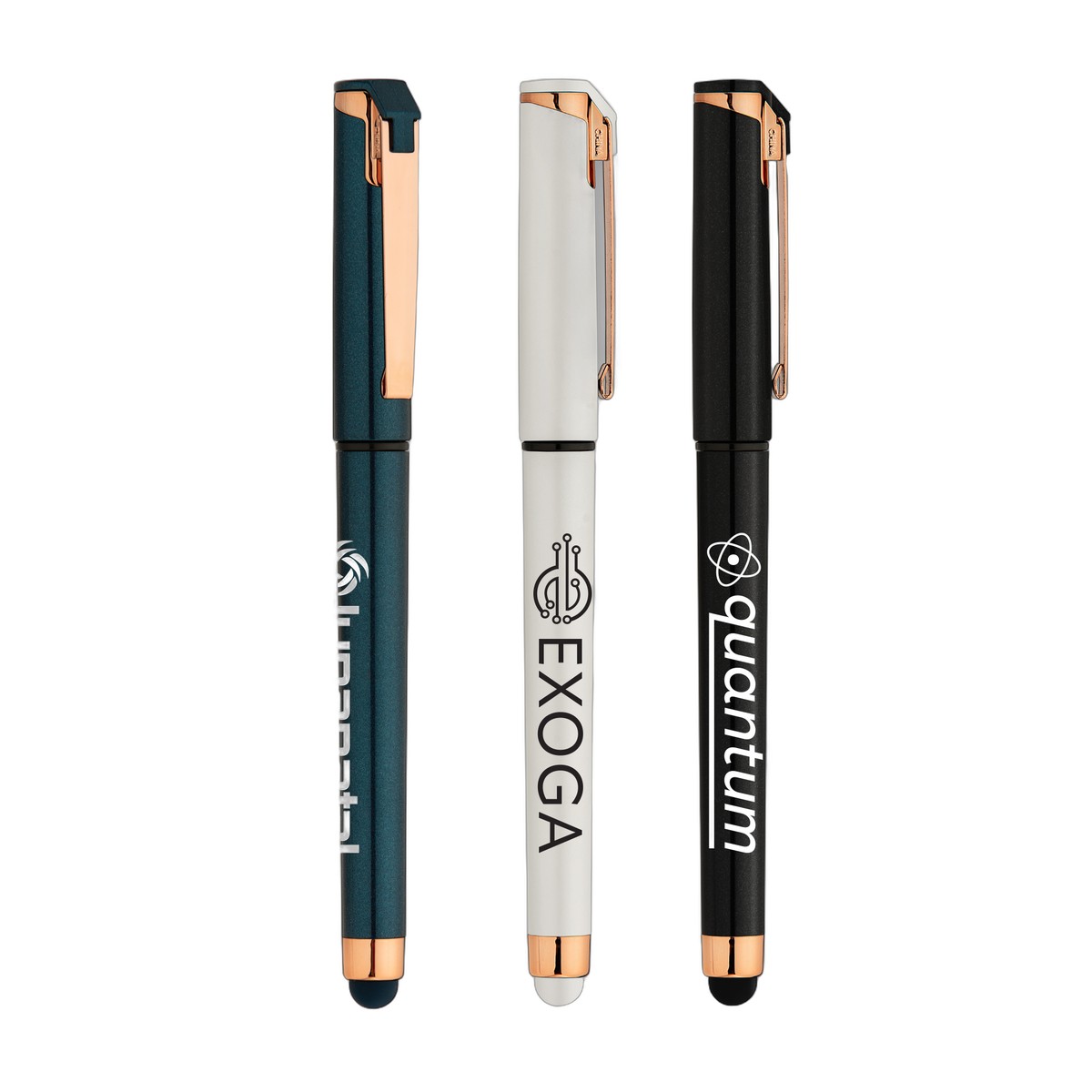 The Islander Pearl Rose Gold Stylus Gel Pen combines top customer favorites: gel ink, a barrel in classic and jewel tones, and a premium rose gold trim. When you remove the cap, the pleasant surprise of a black rubberized basket-weave grip is revealed. With rose gold trim, accents, and a black stylus, this pen will make a great impression. . Complies with Prop 65. 5.94" W x 0.51" D