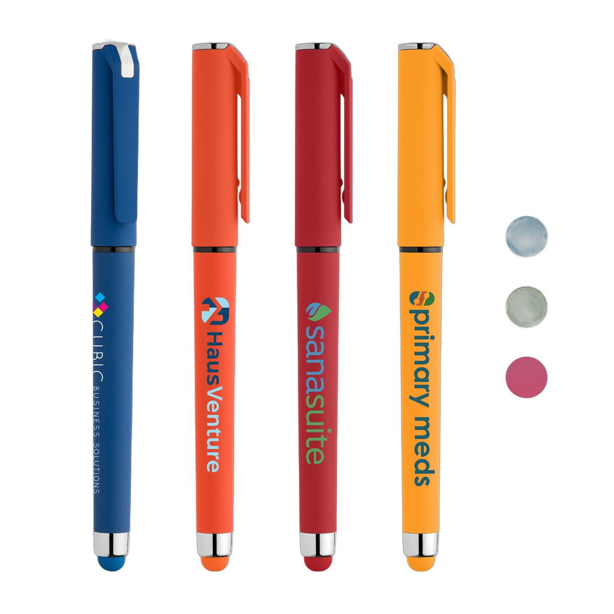 Our Islander is a smooth-writing gel pen with an energetic pop of color. This pen's barrel is made from recycled plastic (rABS), featuring a vibrant, painted rubber finish. The design includes a comfortable black rubber grip and sophisticated chrome accents on the pen tip, top, and end plug. The Islander is equipped with a slim gel ink refill and 0.7mm tip that offers a 400-meter write out. Available in a range of bright colors like green, pink, and yellow, this pen provides a reliable writing experience at a value-friendly price point. 5.91" W x 0.50" D