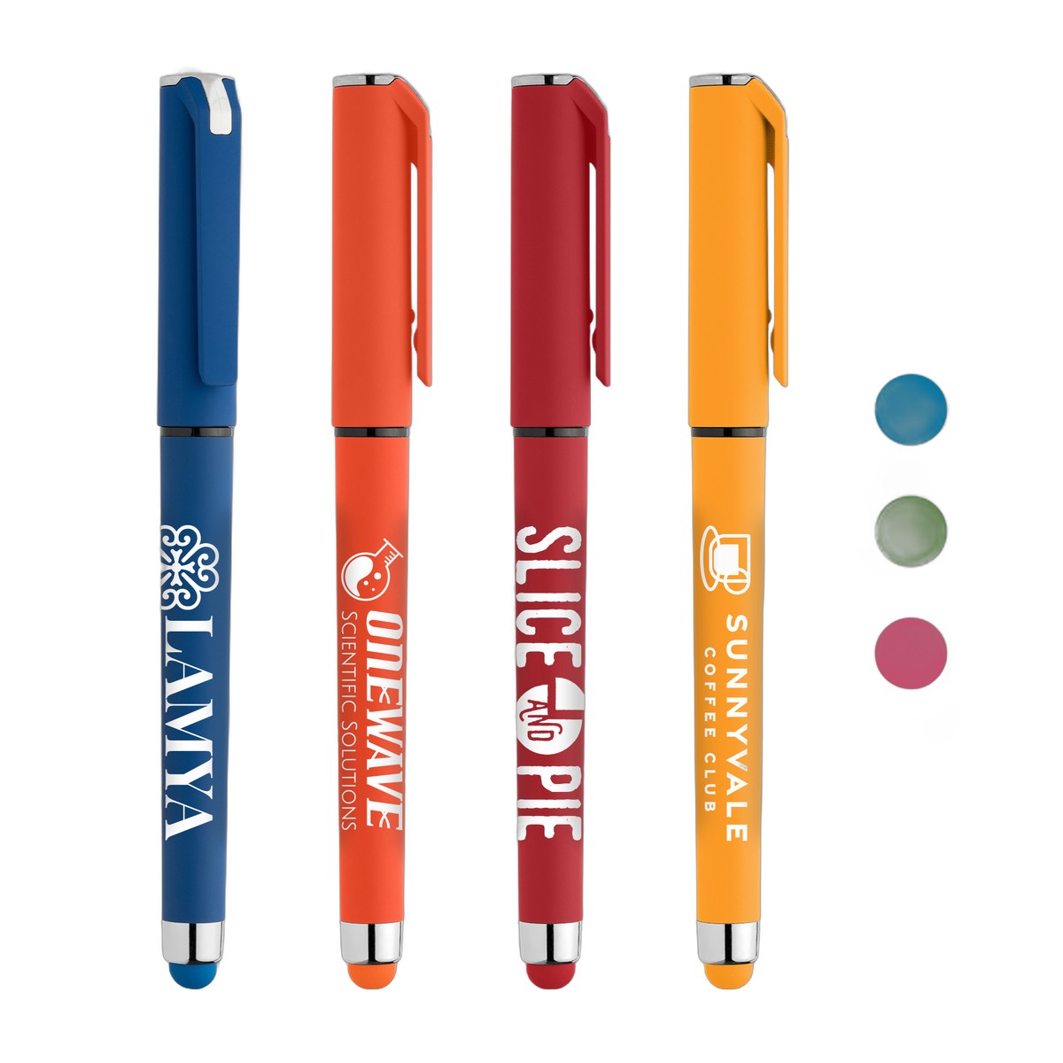 Our Islander is a smooth-writing gel pen with an energetic pop of color. This pen's barrel is made from recycled plastic (rABS), featuring a vibrant, painted rubber finish. The design includes a comfortable black rubber grip and sophisticated chrome accents on the pen tip, top, and end plug. The Islander is equipped with a slim gel ink refill and 0.7mm tip that offers a 400-meter write out. Available in a range of bright colors like green, pink, and yellow, this pen provides a reliable writing experience at a value-friendly price point. 5.91" W x 0.50" D