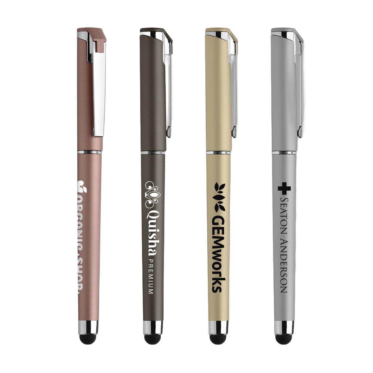 The Islander Softy Metallic Gel pen combines top customer-favorites: gel ink, soft-touch rubberized finish, and premium metallic barrel colors. When you remove the cap, the black rubberized basket-weave grip is revealed. With chrome trim and accents, and black stylus, this pen is sure to make a great impression. . Complies with Prop 65. 5.94" W x 0.51" D