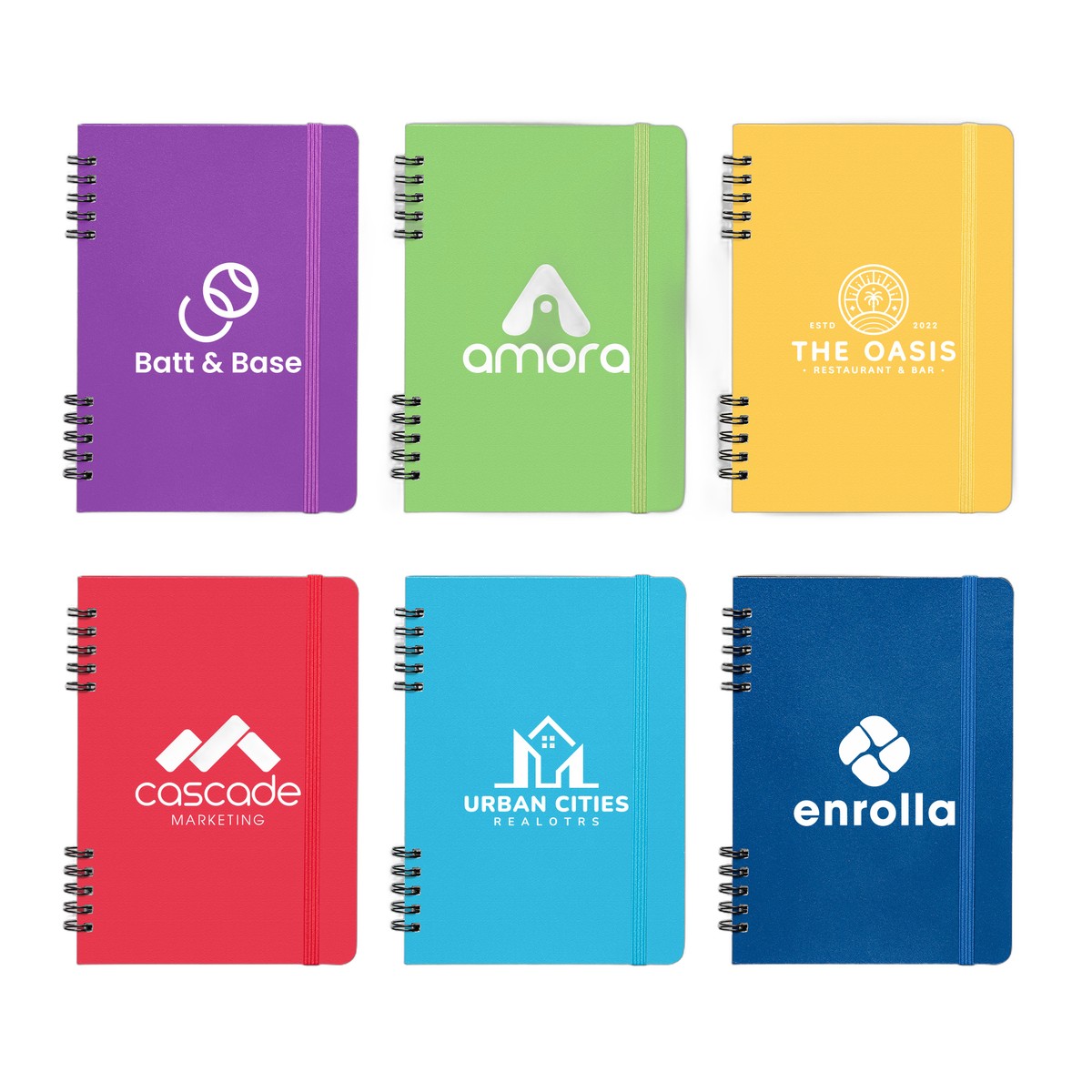 Meet the Jora Notebook is a stylish choice for your notes. This A5 notebook features a durable hard cover made from polyurethane and is held together by a sturdy black metal spiral binding. The unique spiral design is split into two parts, and its size allows you to easily fit a pen within the binding for convenience. Inside, the notebook contains 80 sheets of 80gsm FSC®-certified lined white paper, ensuring every page supports responsible forestry. A matching color elastic band closure keeps the notebook secure when you're on the go, making this a functional and conscious option. 6.93" H x 4.96" W