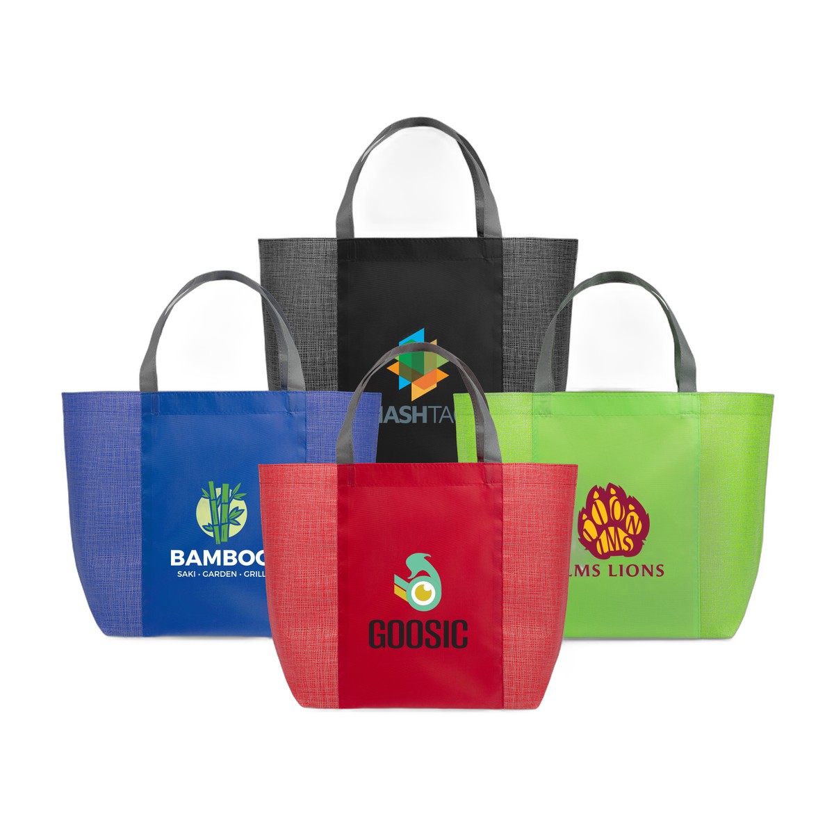 The Julian Plus Shopping Tote is constructed with 80 gram non-woven polypropylene with stylish cross-hatch pattern, and a solid-color 210D polyester center section. This reusable tote bag measures 20'' wide x 13'' high, with an 8'' wide gusset, so it's ideal for shopping. This tote bag has a large imprint area, so it's perfect for advertising your company with a 1-color silkscreen imprint. Complies with Prop 65. 13.00" H x 20.00" W x 8.00" D