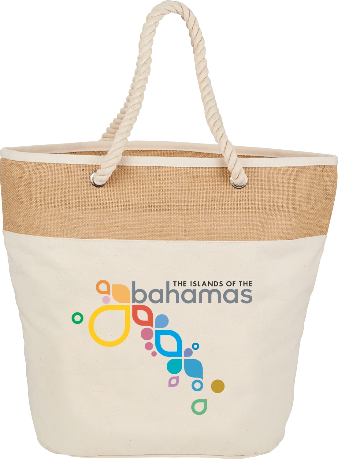 The Jute Accent 12oz Cotton Canvas Rope Tote is part of the natural collection, and is the perfect bag for the on-trend carrier. This sturdy cotton tote has very large soft cotton rope handles that are accented perfectly by the natural jute accent. The large open main compartment has enough room for all of your essentials. 8.00" D x 20.00" W x 15.00" H