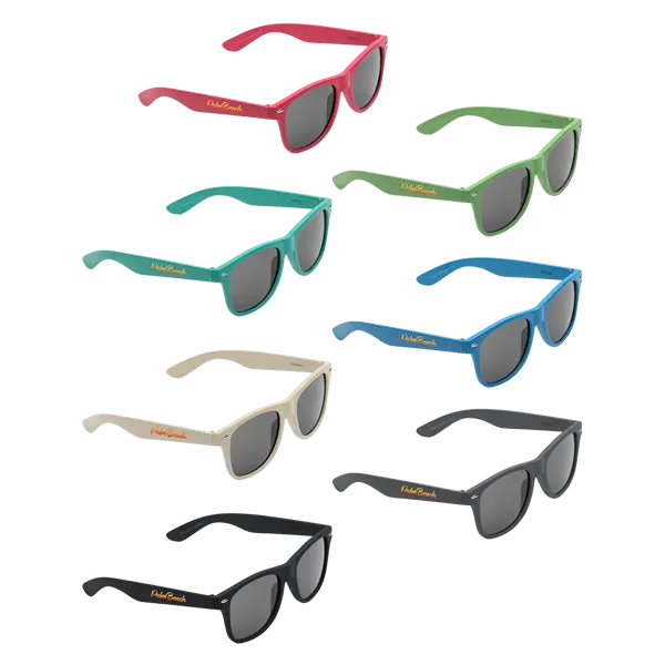Wheat straw fiber and polypropylene sunglasses. Polycarbonate lenses provide UV400 protection. 5.75" D x 1.875" H x 5.6875" W