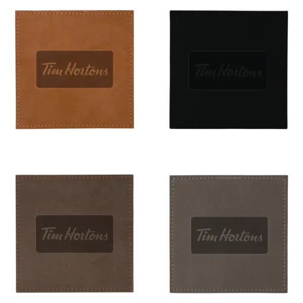 Kilner 6" debossed leather trivet. Choose from a variety of domestic, USA Made, leather colors and customize to match your company logo to create something truly unique. Colors and distress marks will vary - Variations found in natural leather. Complies with Prop 65. 6" W x 6" H