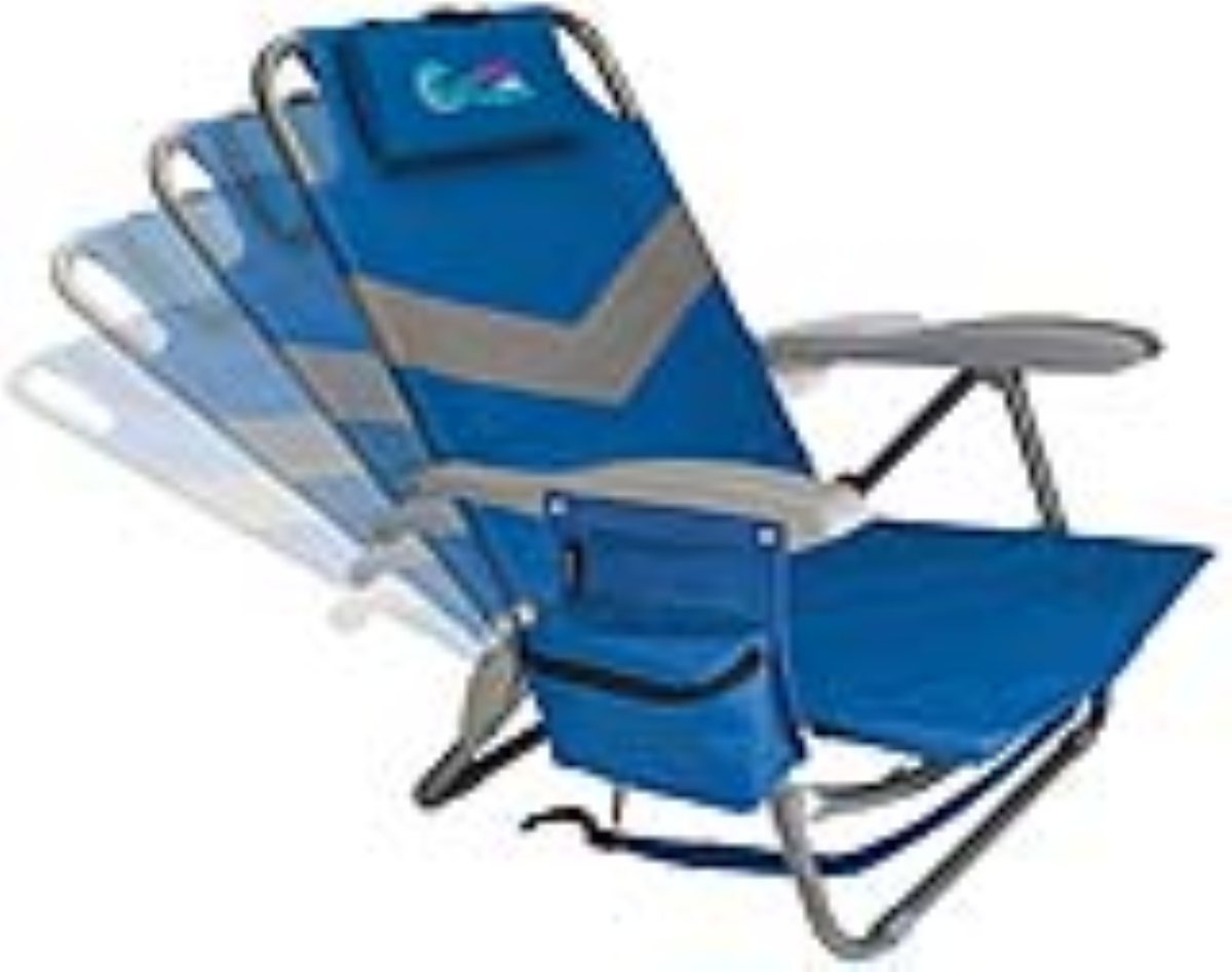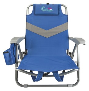 Have a great time at the beach with this bold and sporty Koozie® chair! The comfortable padded shoulder straps make carrying it a breeze. With an attached Koozie® cooler, removable padded headrest, four recline positions, and rubber carry handle, your ultimate chill day at the beach just got better! 24" W x 28.375" H x 30.375" D