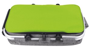 The large, lightweight Koozie® Collapsible Jumbo Picnic Basket is perfect for bigger groups. An excellent choice for tailgating, it comes equipped with an attached bottle opener, a front zippered compartment for snacks or valuables, and two other compartments with heat-sealed PEVA lining. The bottom compartment is ideal for storing a casserole dish or a blanket. When the fun is done, this picnic basket collapses for easy storage. 15.5" W x 18.125" H x 12.1875" D