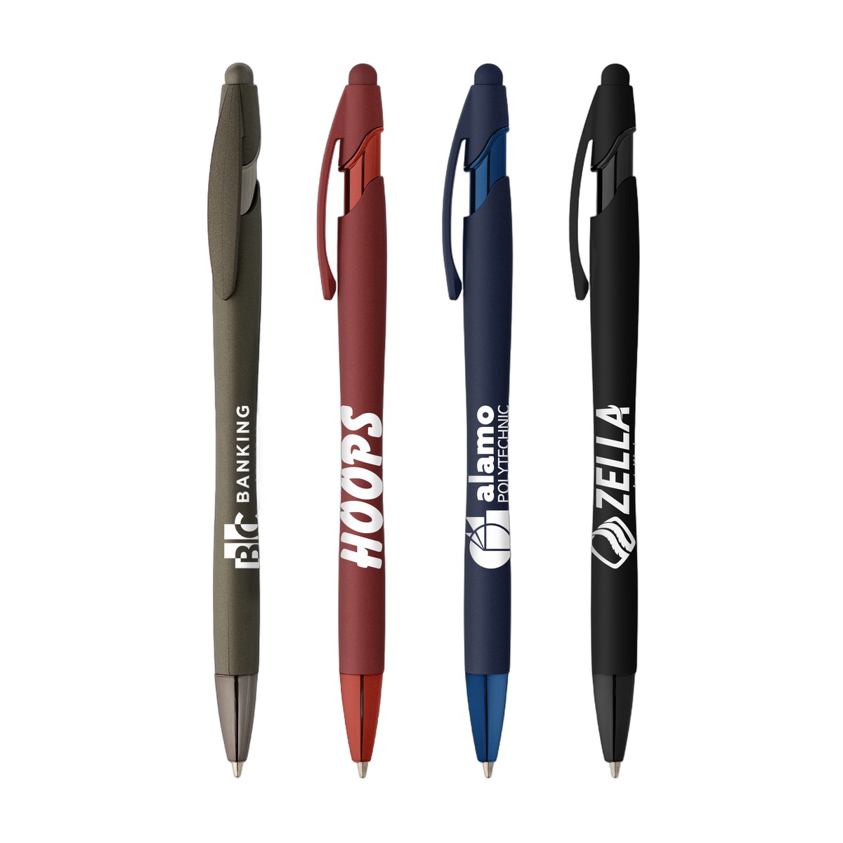 The La Jolla Softy Monochrome Classic Pen is a sophisticated, stylish plastic pen with modern matching trim and a soft-touch rubberized finish. This medium black ballpoint pen also features a touchscreen stylus at the top, making this the perfect 2-in-1 promotional gift. Classic colors are available. Show your brand's true colors with ColorJet, our full-color inkjet imprint process. Complies with Prop 65. 5.65" W x 0.41" D
