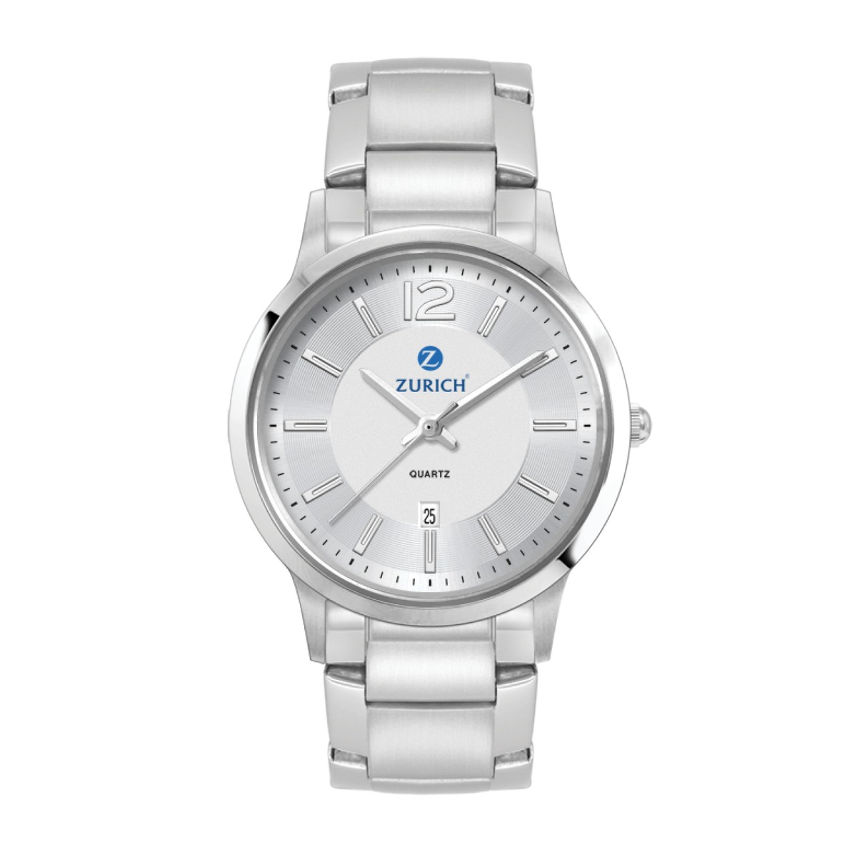 31.5mm Stainless Steel Case, High Precision 3-Hand date display Japanese Movement, Flat Mineral Crystal, Stainless Steel Bracelet, Water Resistant to 5 ATM. Complies with Prop 65. 1" W x 1" H x 1" D