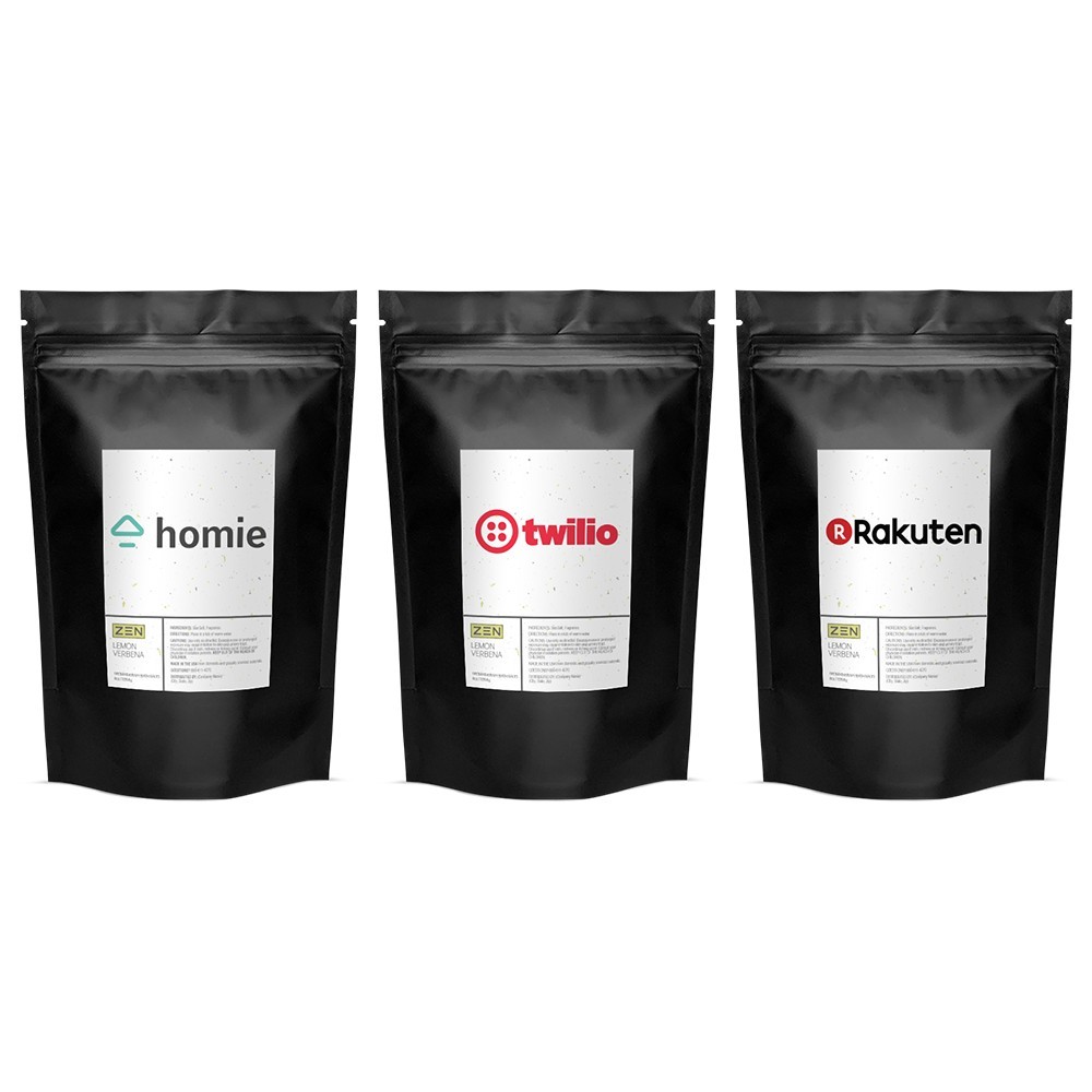 A gift no one in the history of the earth has ever been disappointed by? Bath salts. Especially when they're sumptuously-scented ZEN lemon verbena bath salts made with mineral-rich sea salt in our USA-based, FDA-registered facility. This classic black, stand-up pouch makes for easy pouring and storing. Chat with our design team today to craft your own signature spa gift. Complies with FDA. 5.125" W x 8.125" H