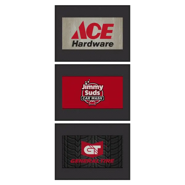 SuperScrape Impressions mats feature your custom logo or artwork overlaid onto a SuperScrape mat. Multi-color images are created by molding a digitally printed polymetric material into the durable nitrile rubber surface of the mat.