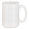 14 oz. magnum mug with an extra-large handle and a glossy exterior/interior appeals to serious coffee or tea drinkers. It measures 3 3/8" dia x 4 11/16" h x 5" w, and it reaches its 14 oz. capacity when filled to the rim.