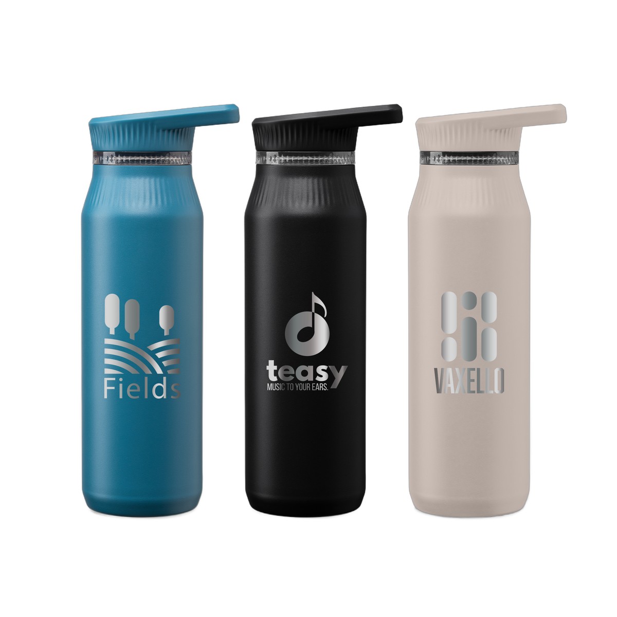 Get a grip on your hydration with the high-performance Majesty. This premium bottle is crafted with double-wall vacuum insulation using stainless steel (91% of post-consumer recycled stainless steel - 304 RSS inner, 201 SS outer). It's engineered to keep drinks hot or cold for up to 15 hours.The 25 oz. (750 ml) bottle features a durable powder-coated finish and a texture on the neck, ensuring a secure grip. Its dual-lid construction allows for easy cleaning, while the leakproof polypropylene plastic screw-on lid has an integrated handle for convenient transport. This bottle is BPA-free and lead-free, offering a refined, high-capacity way to carry your beverage. 10.16" H x 3.07" W