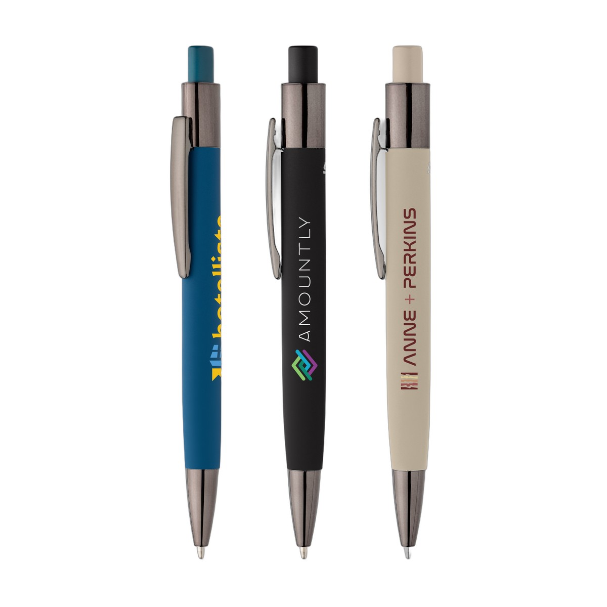 Discover the Malmö Recycled Aluminum Pen, a modern writing instrument. This retractable pen features a barrel crafted from recycled aluminum with a soft, tactile rubber painted finish. Its oval shape is not only ergonomic but is specifically designed to perfectly fit a micro QR code imprint, making it ideal for unique marketing campaigns. The sleek design is enhanced by trendy dark gunmetal trim on the tip, top, plunger, and the steel clip. Equipped with a slim Dokumental ink refill, the Malmö pen delivers smooth black ink through a 1.0mm tip and provides a reliable 600-meter write out length, making it a stylish, comfortable choice. 5.54" W x 0.49" D